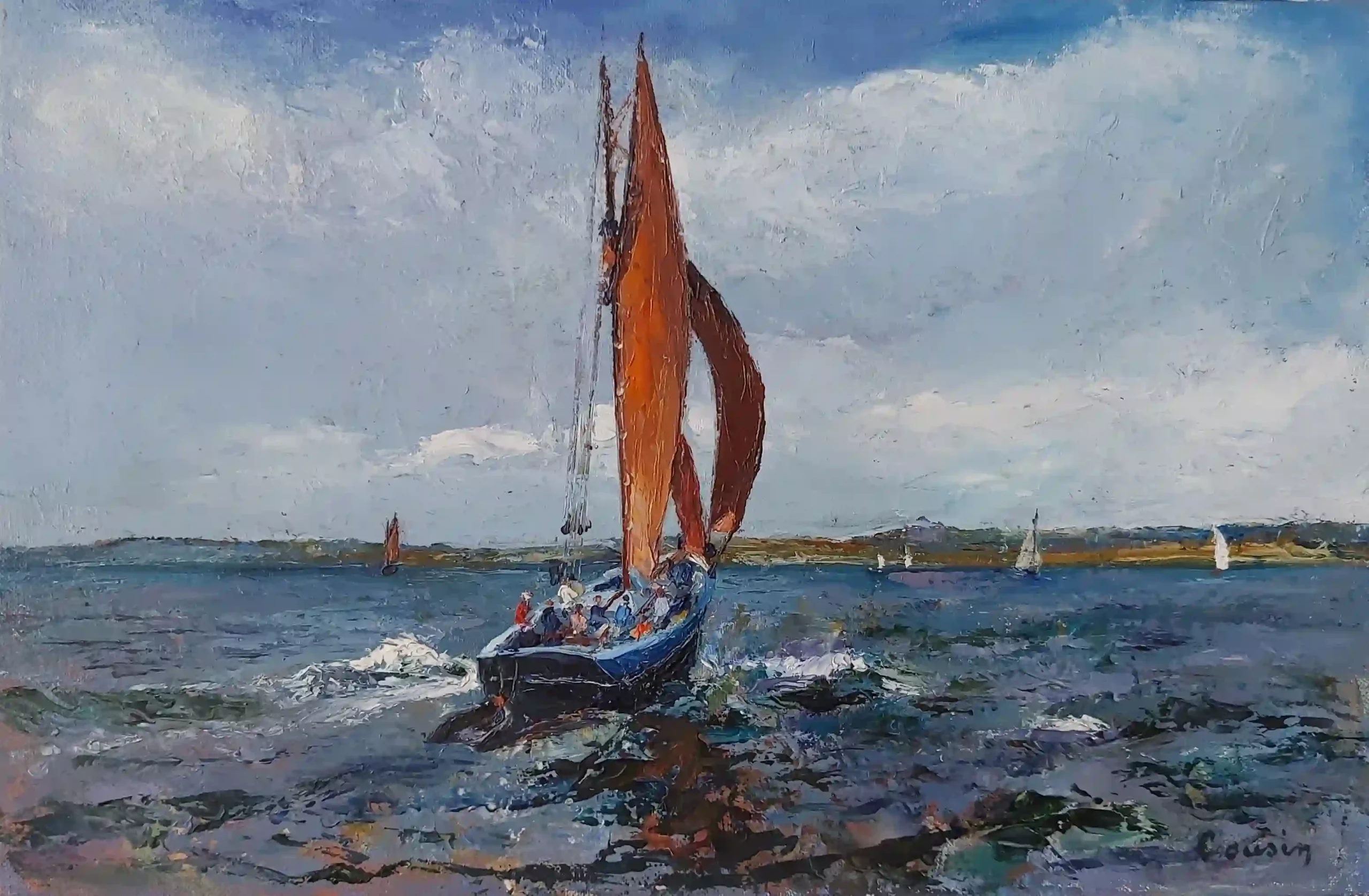 Voiles rouges Huile sur toile au couteau 27x41cm