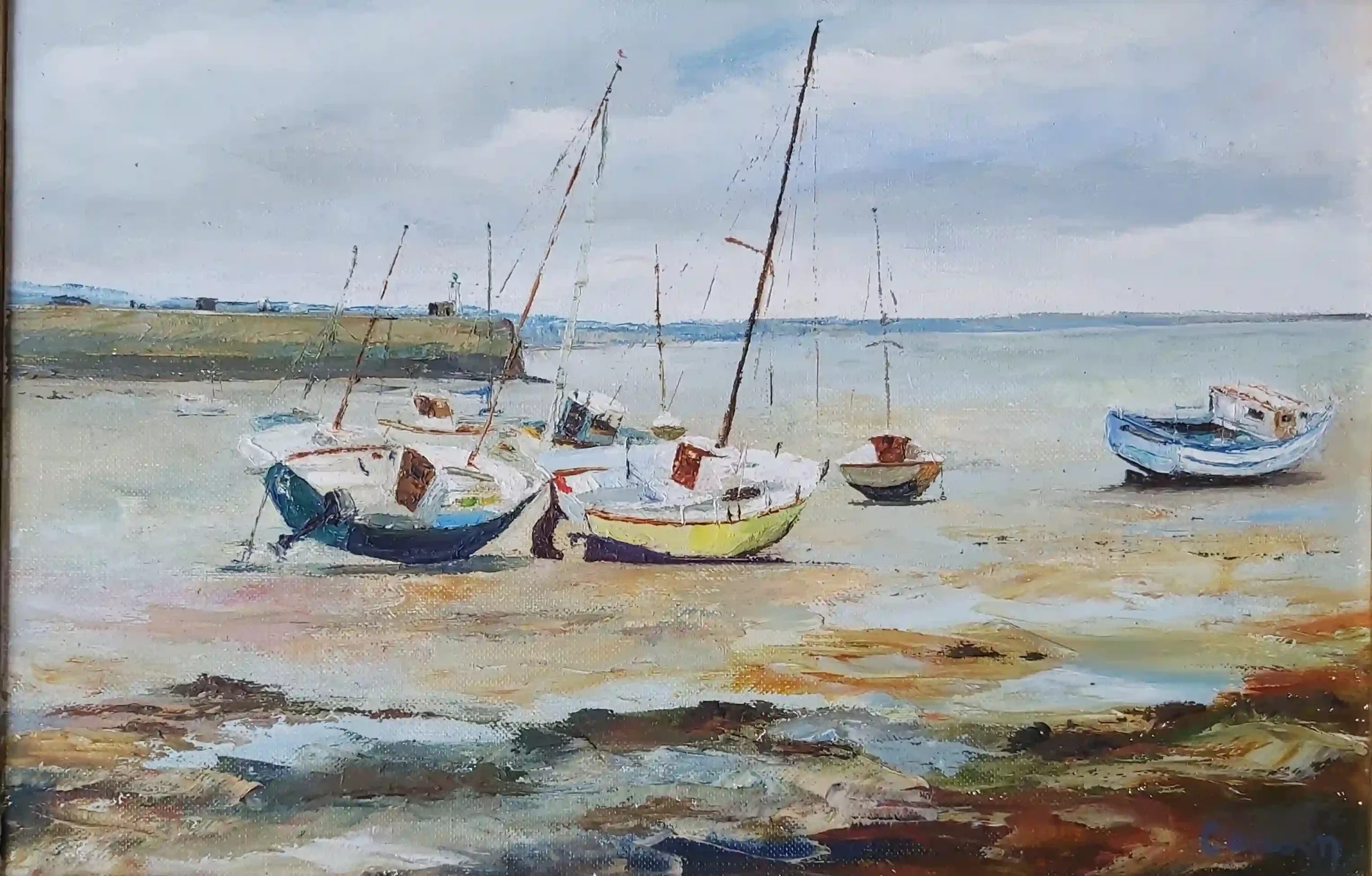 Port de Granville à marée basse Huile sur toile au couteau 27x41cm