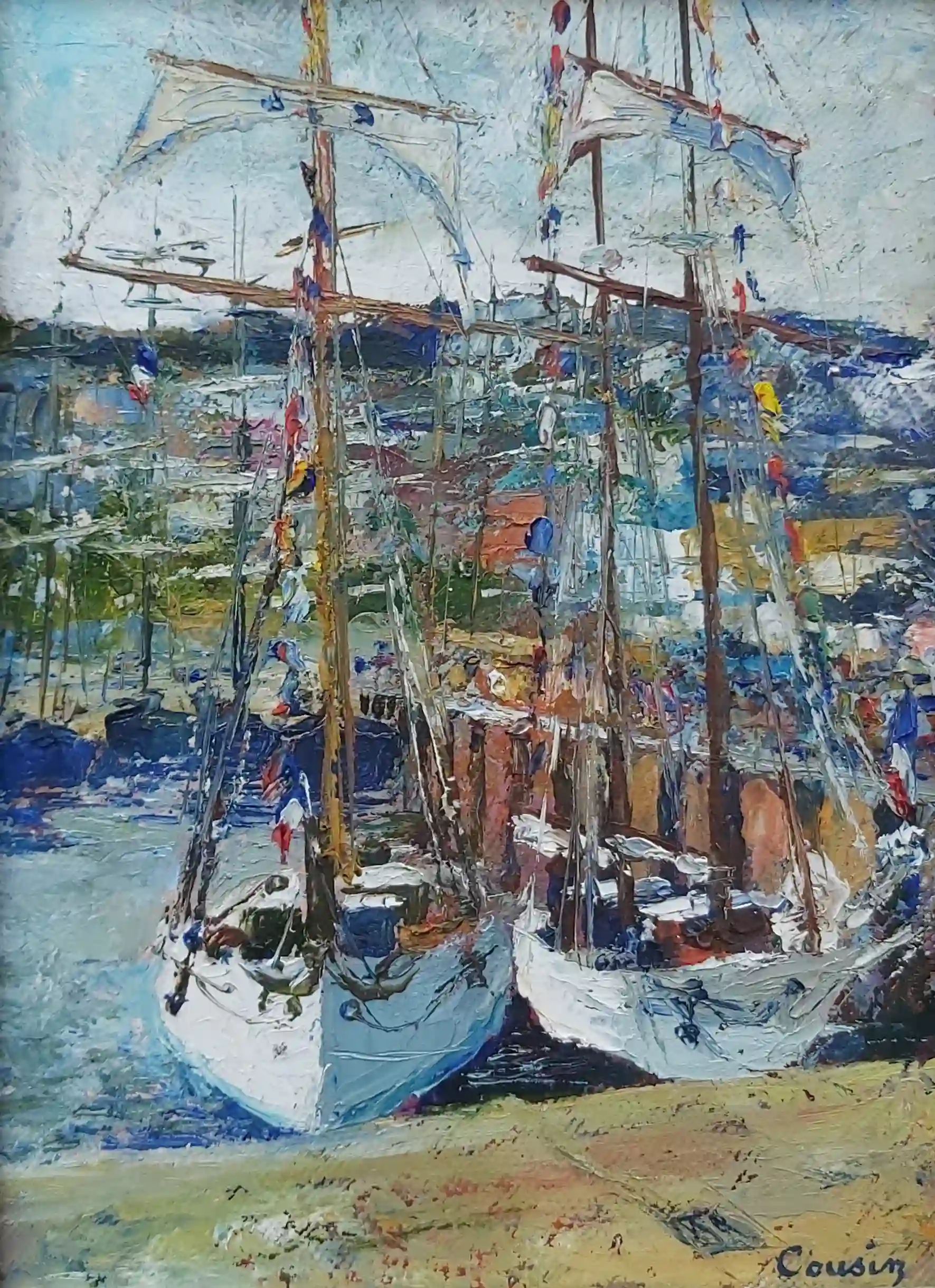 Vieux gréments à Douarnenez Huile sur toile au couteau 22x16cm