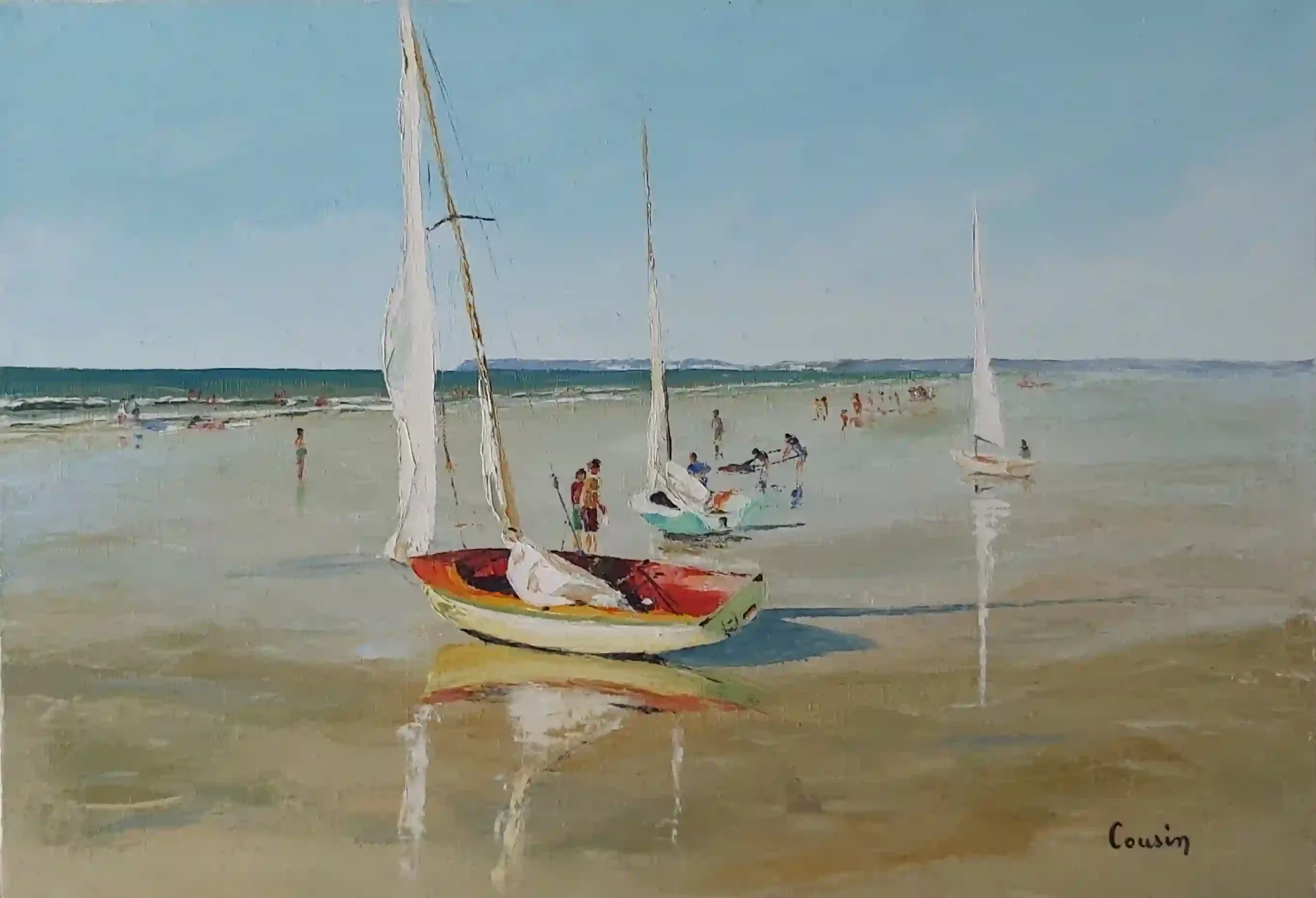 Voiliers échoués sur le sable Huile sur toile au couteau 38x55cm