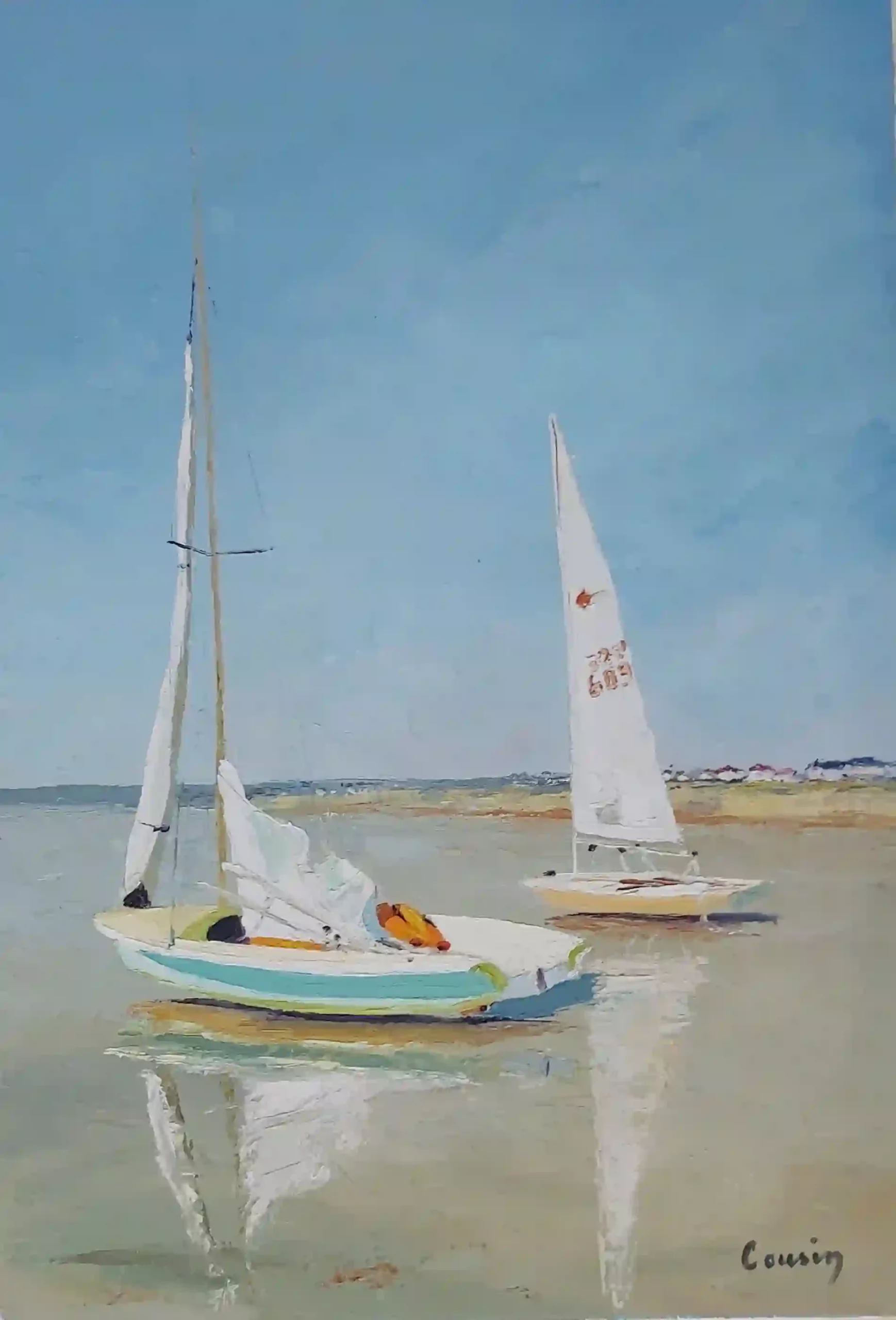 Voiles au repos à Jullouville (29 – Bretagne) Huile sur toile au couteau 55*38cm