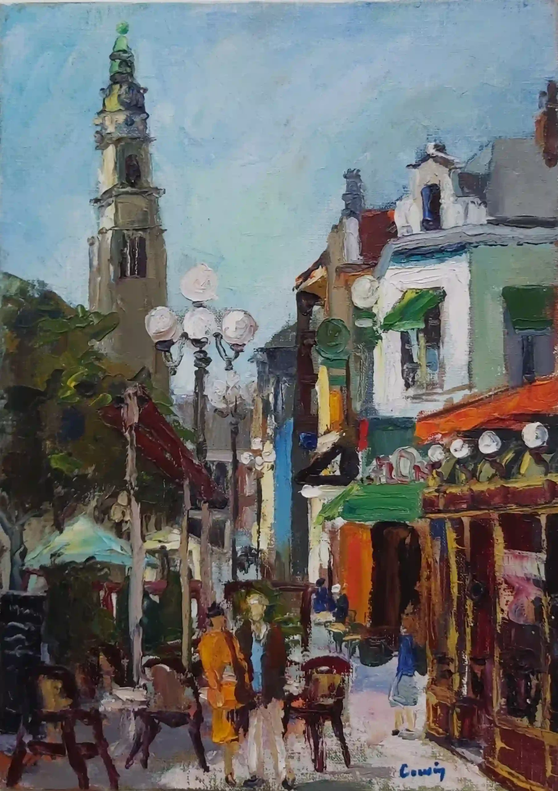 Vers le Beffroi de Cambrai. Huile au couteau sur toile 46x33cm