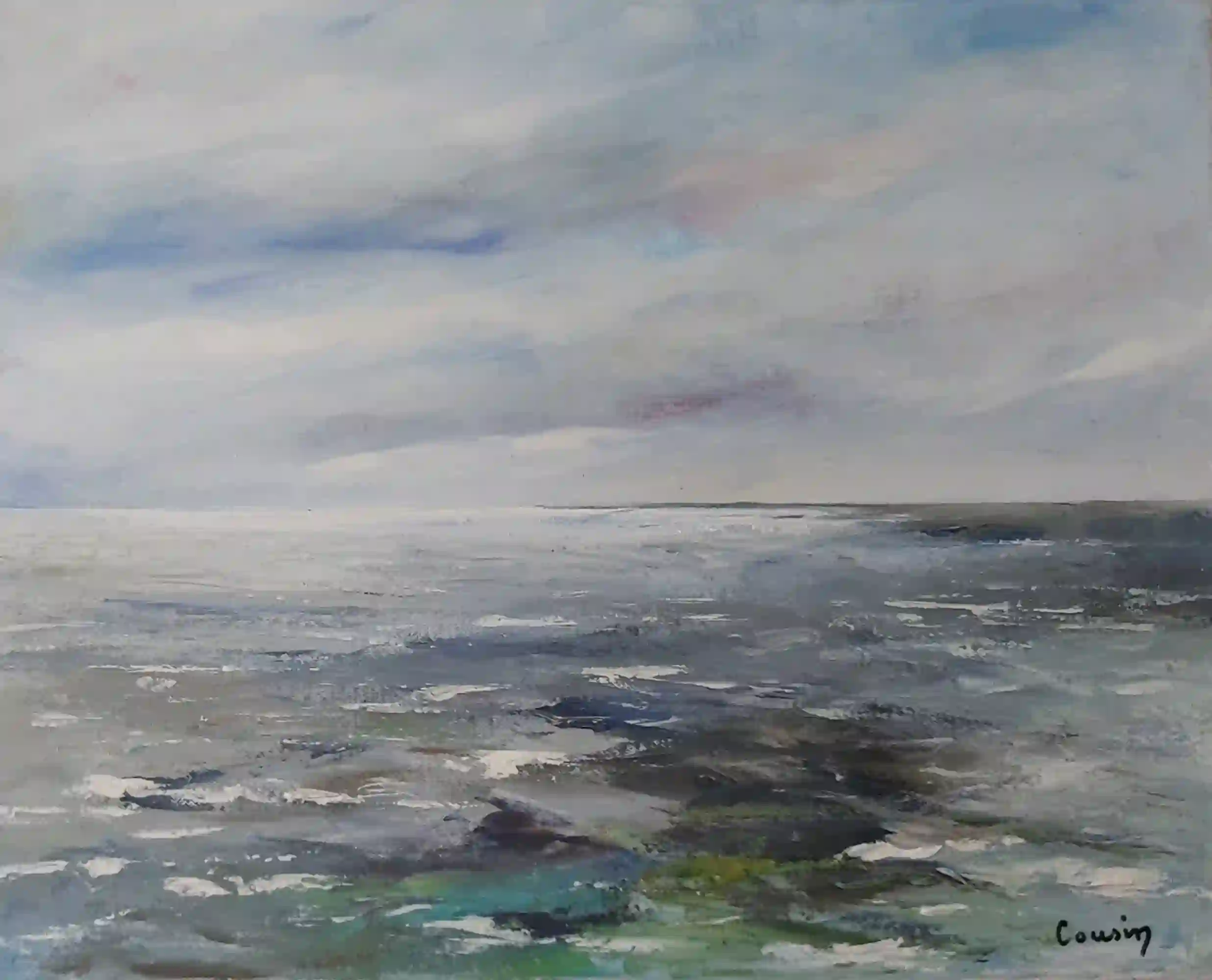 Brume sur la mer. Huile au couteau sur toile 40x50cm