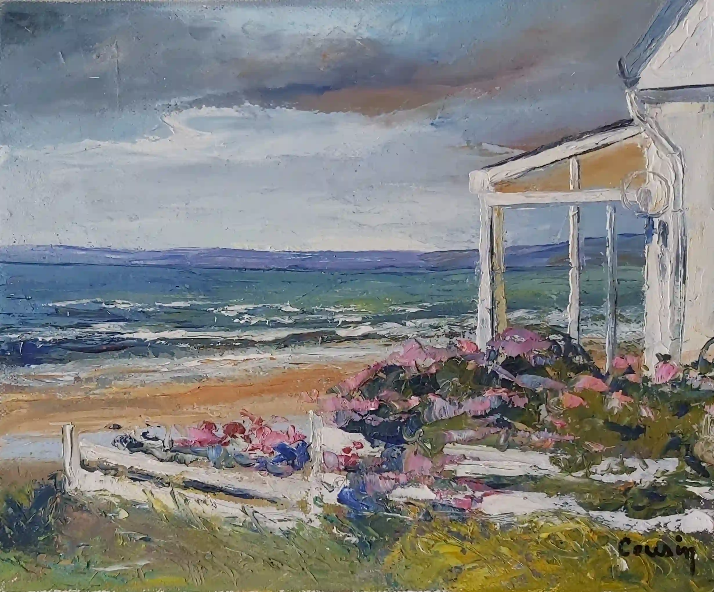 Véranda sur la plage de Kervel. Huile au couteau sur toile 25x30cm