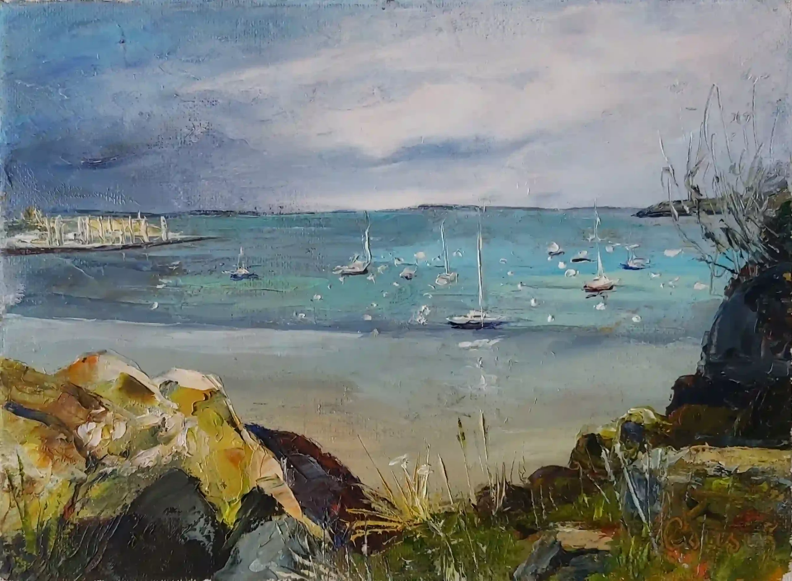 Entrée du port du Saint-Cast. Huile au couteau sur toile 18x24cm