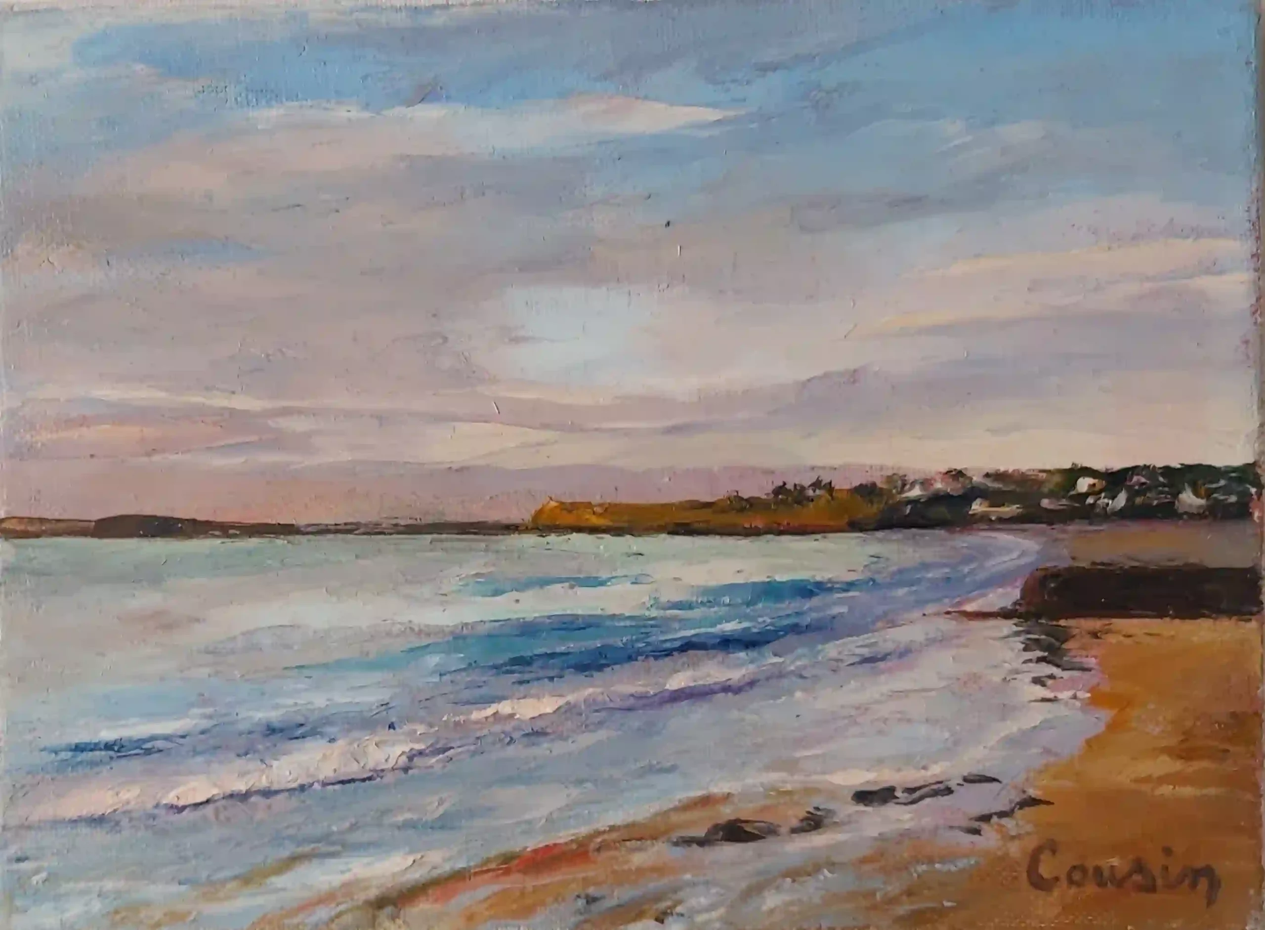 Crépuscule à Saint-Cast. Huile au couteau sur toile 18x24cm