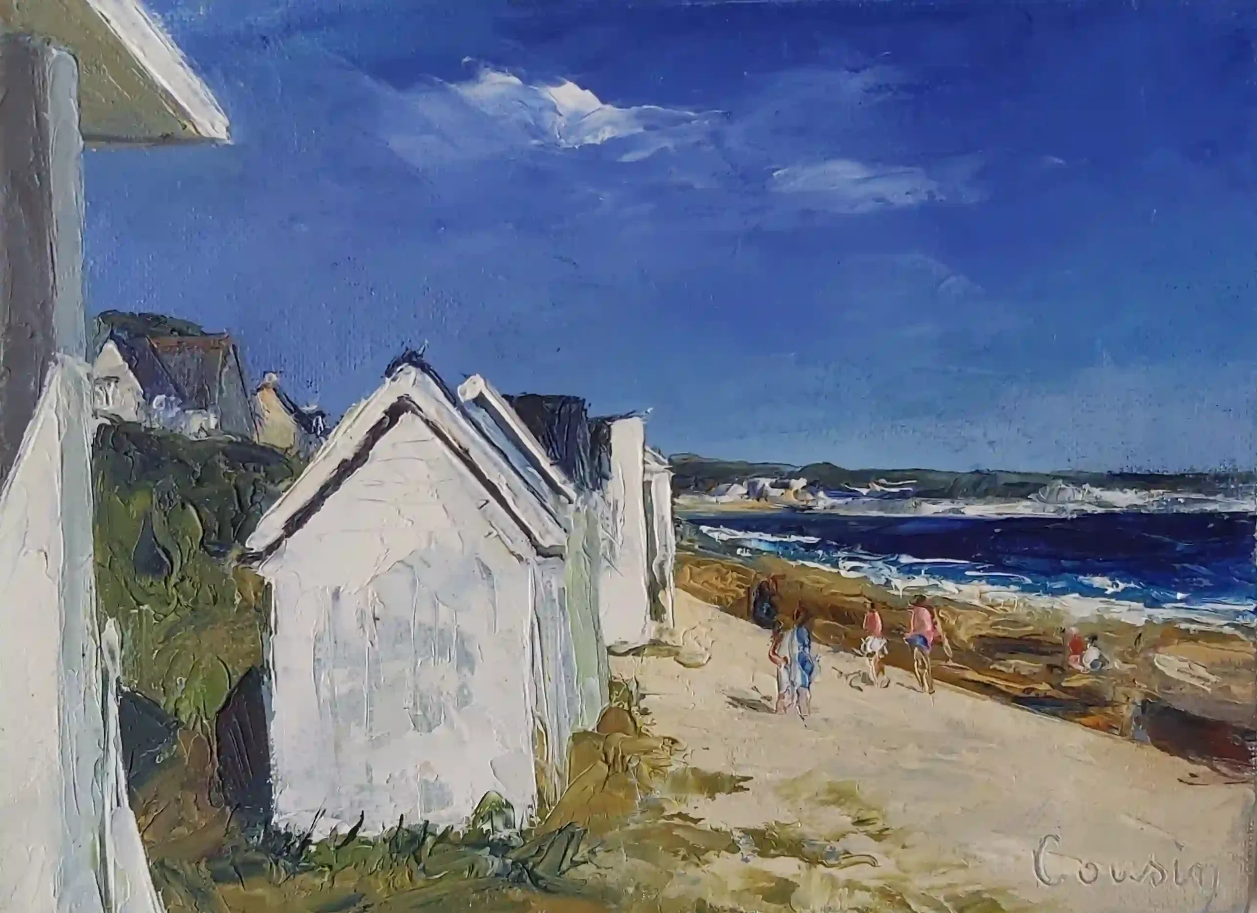 Cabines à Saint-Cast. Huile au couteau sur toile 18x24cm