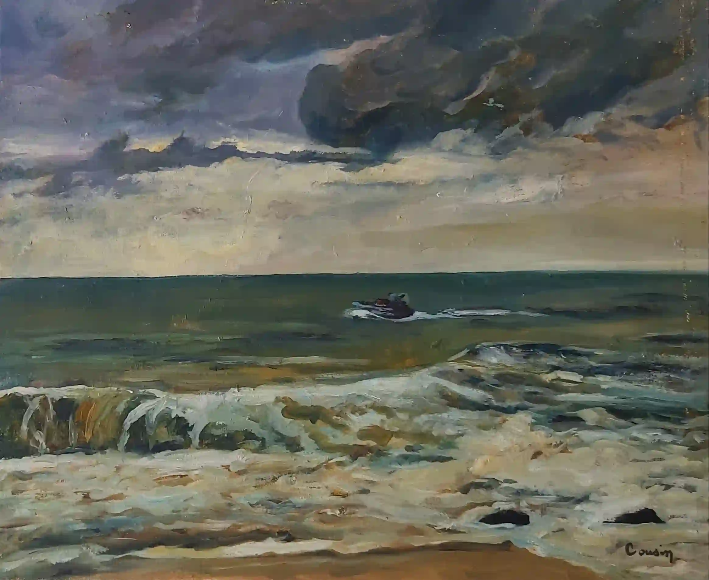 Vagues sous l’orage. Huile au couteau sur toile 46x38cm