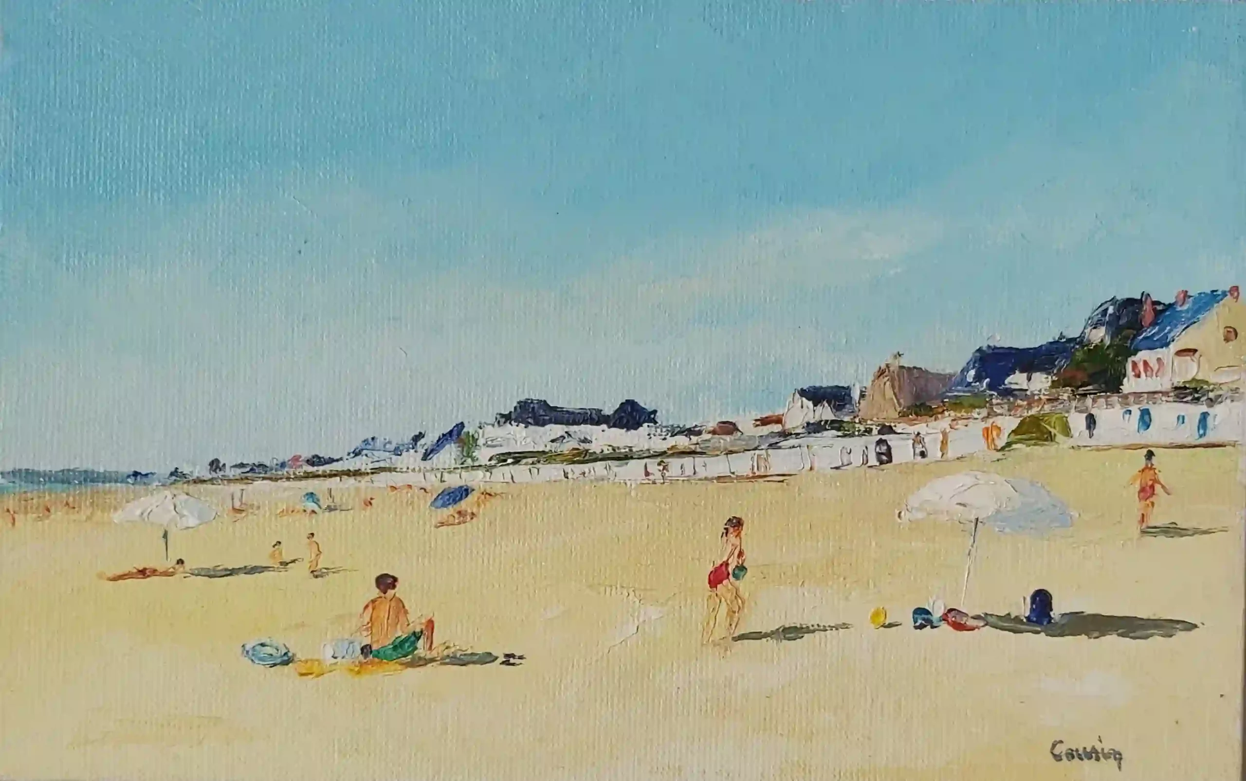 Plage de Jullouville. Huile au couteau sur toile 14x22cm
