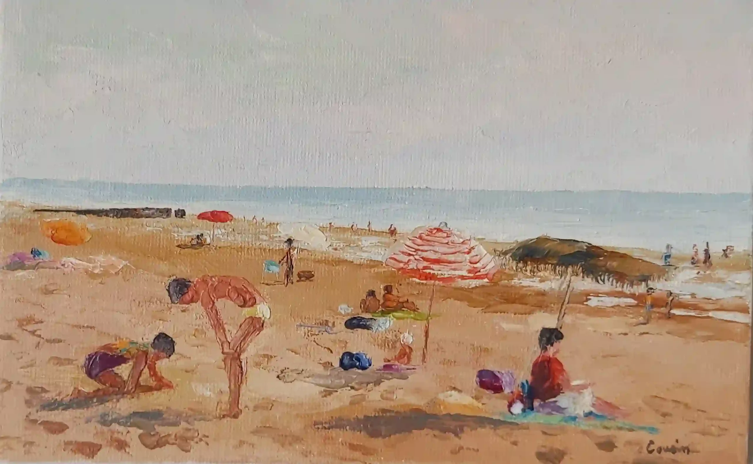 Soirée sur la Plage de Jullouville. Huile au couteau sur toile 14x22cm