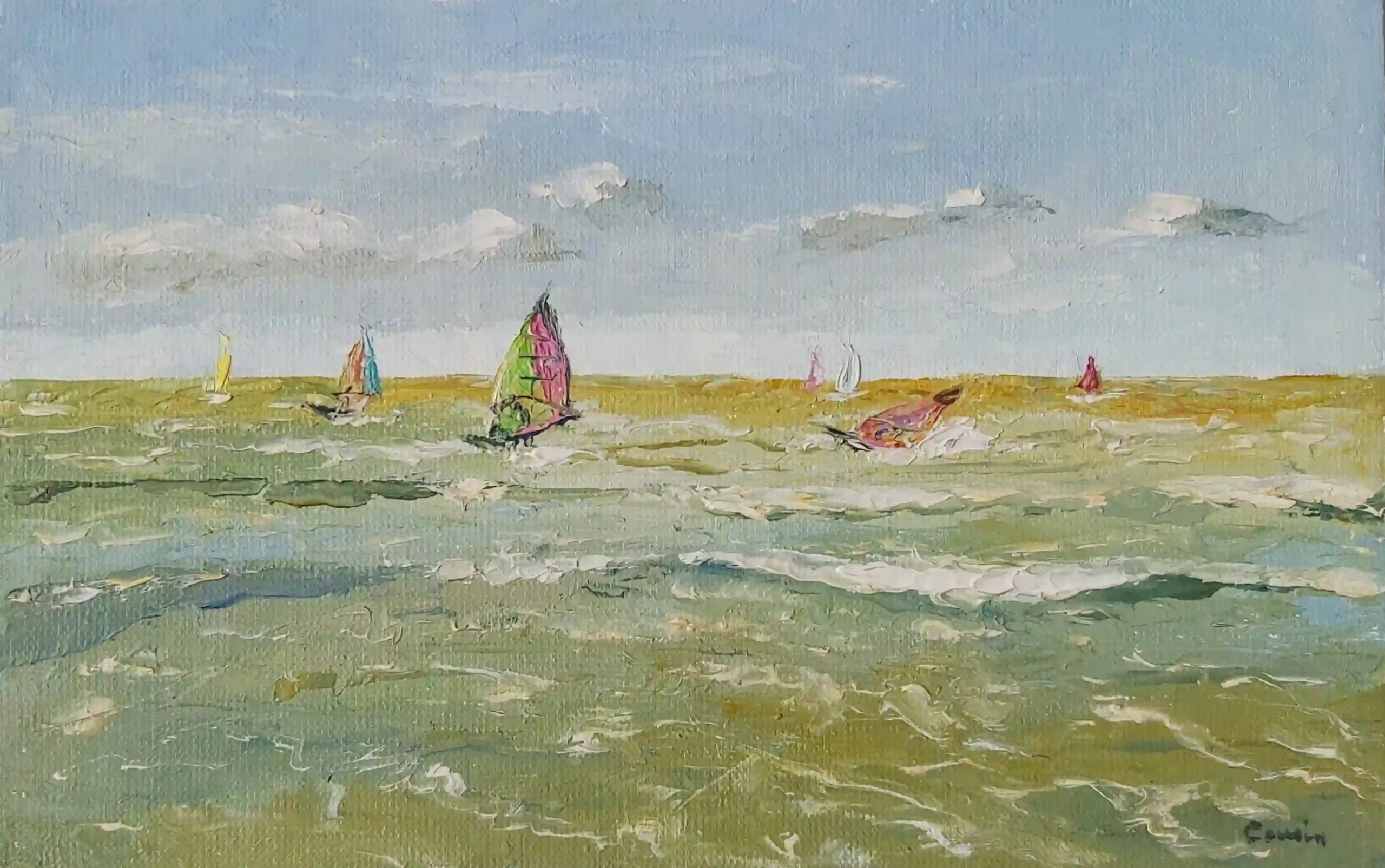Voiles à Jullouville. Huile au couteau sur toile 16x22cm