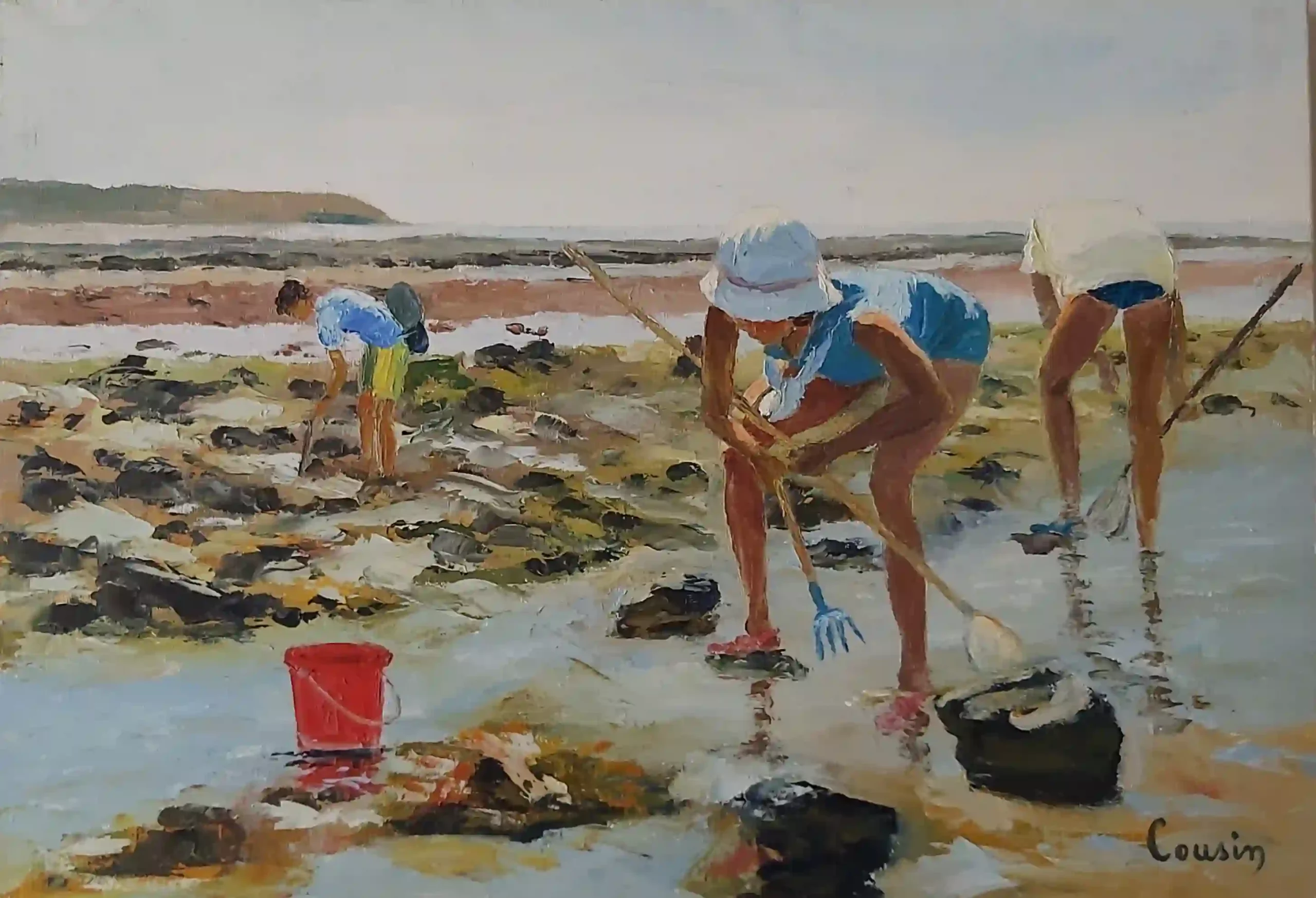 Pêche au bouquet. Huile au couteau sur toile 38x55cm