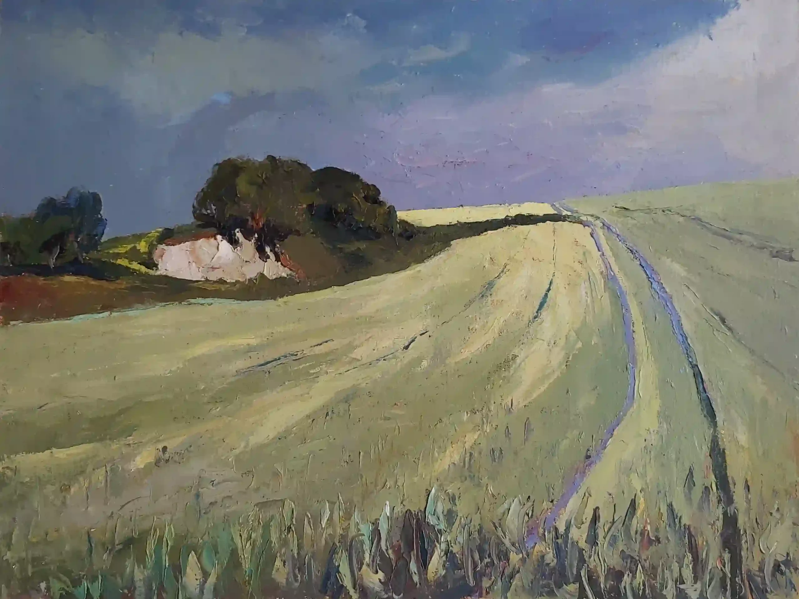 Huile sur toile au couteau 46x61cm. Champ près d’Abancourt