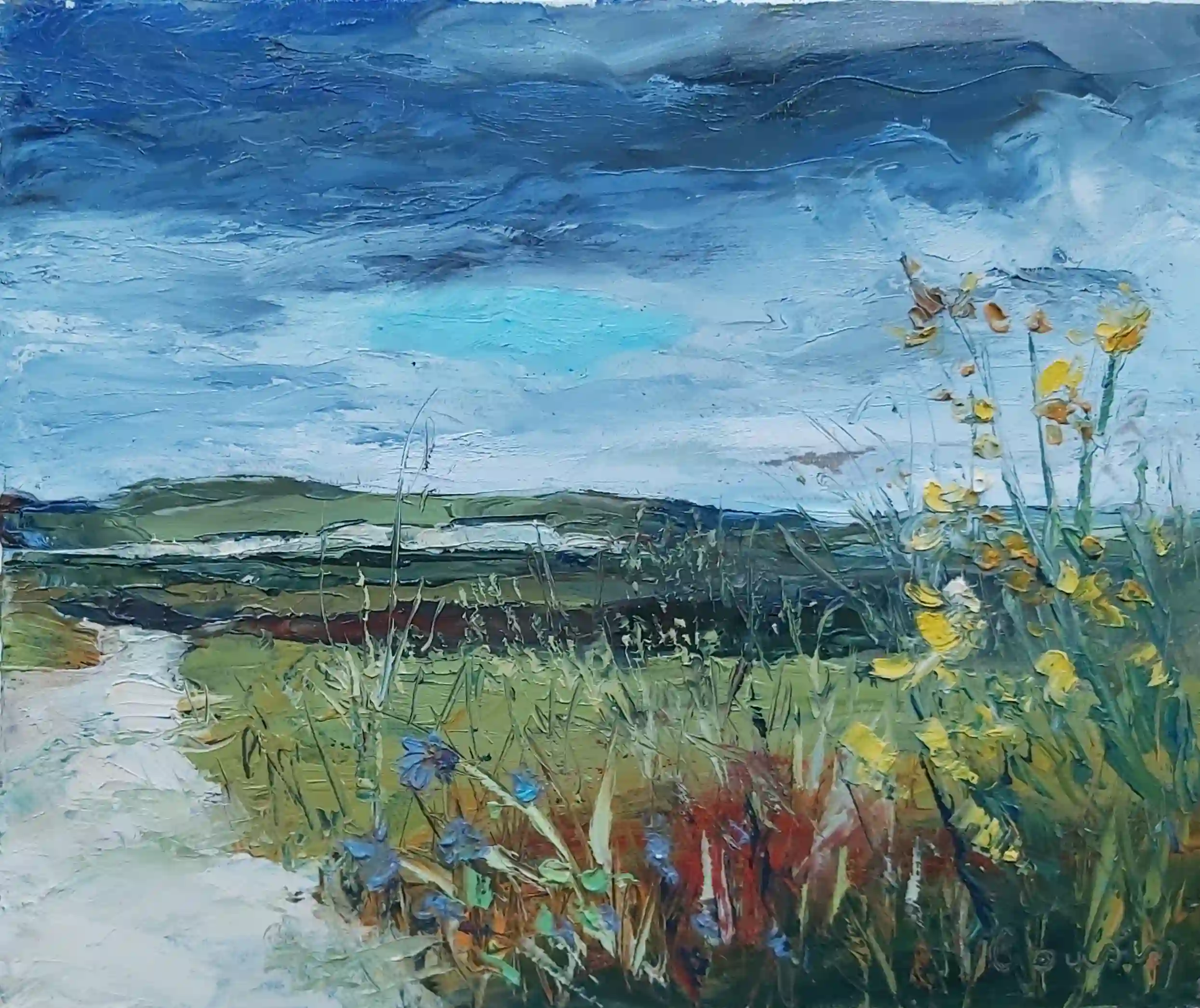 Huile sur toile au couteau 25x30cm. Sentier à Ventabren