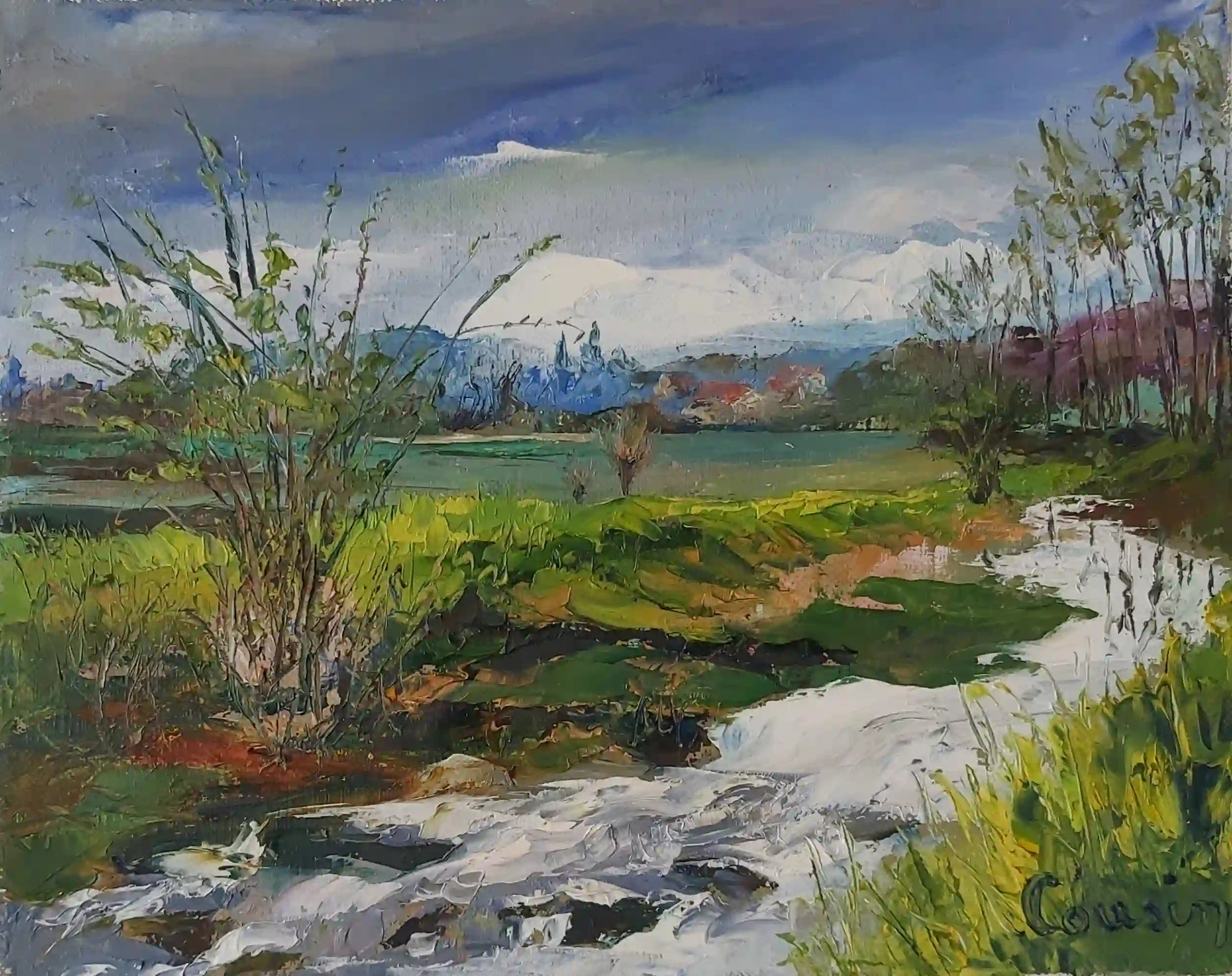 Huile au couteau sur toile 22x27cm. Ruisseau près d’Arras