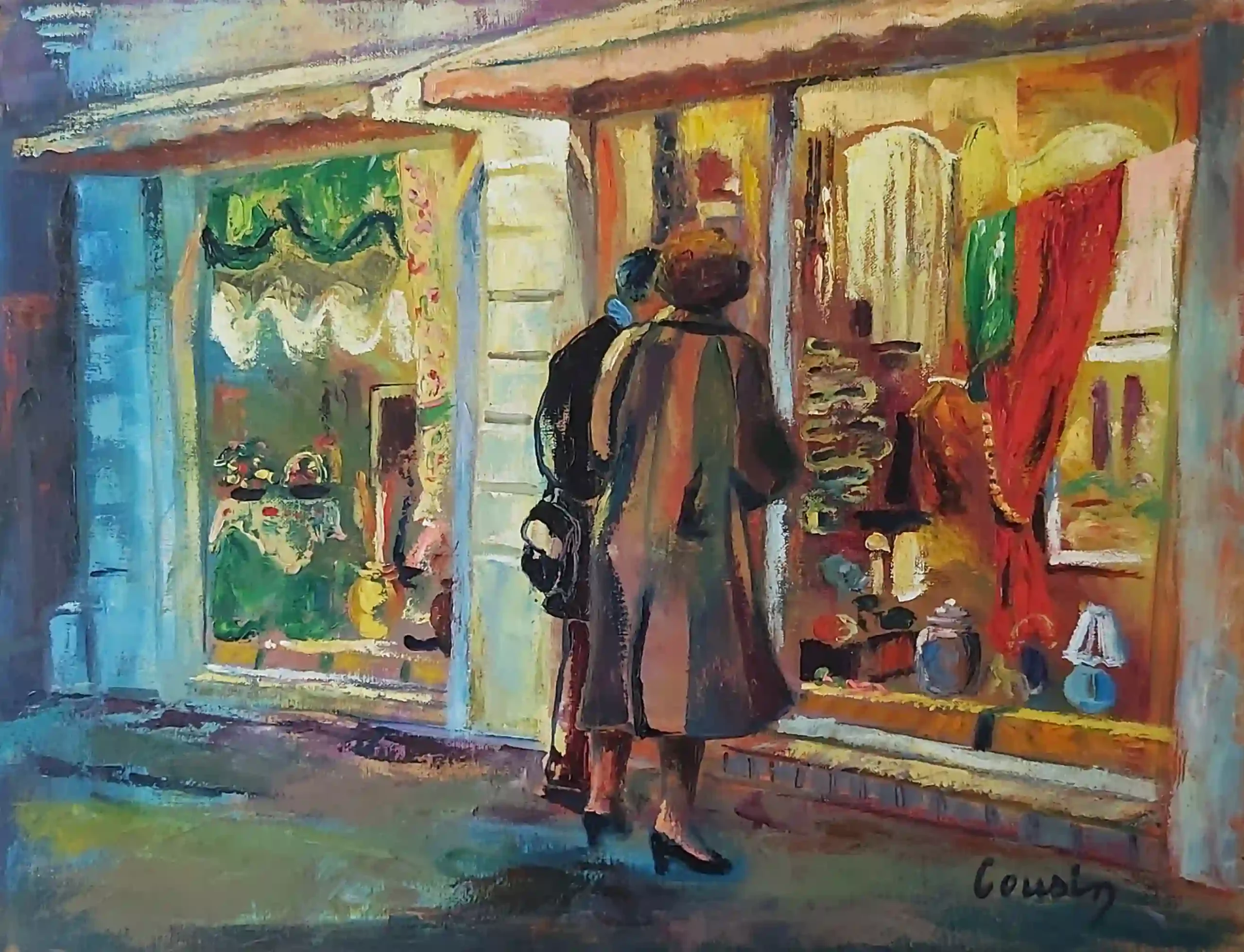 Huile au couteau sur toile 50x65cm. Lèche-vitrine