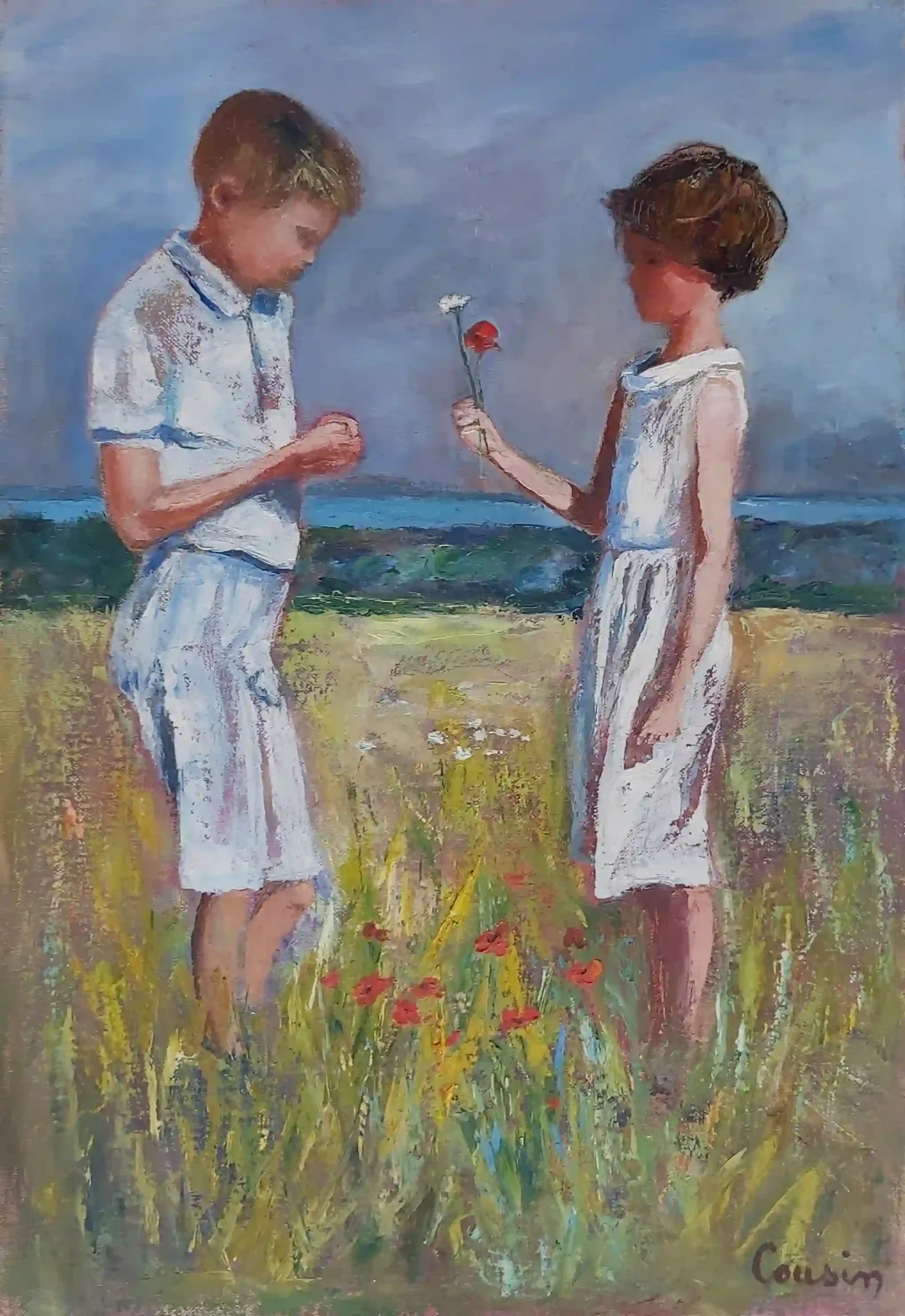 Huile au couteau sur toile 55x38cm. Claire et Richard à Jullouville